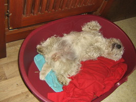 ist gepackt, bin jetzt 13 Wochen alt und werde gleich von meiner neuen Familie ( sie sind super nett)abgeholt. Frauchen hat mich schon ein wenig getrimmt, jetzt heult sie wieder, das braucht sie aber